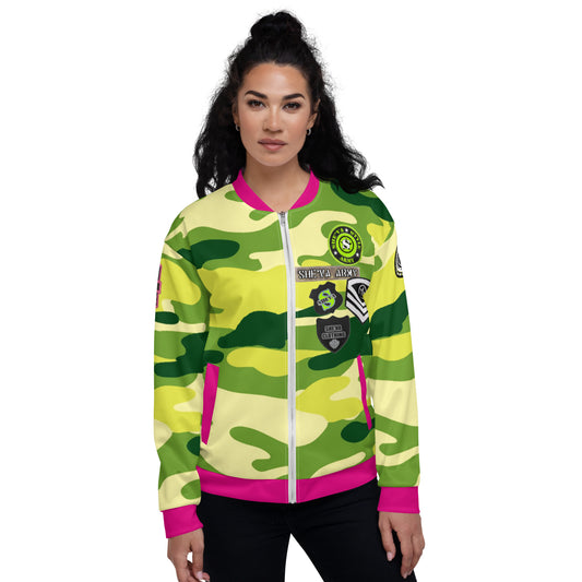 Army Patched Unisex Camo Bomber *Olive/Fuchsia *